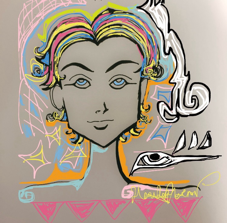 Colored/digitally painted version of a regular black ink sketch I made, did this a few weeks ago & was planning on selling as a graphic tee spaghetti strap & a sticker in a shop I now cannot open. It was for Sun Child by Heather Harmon.